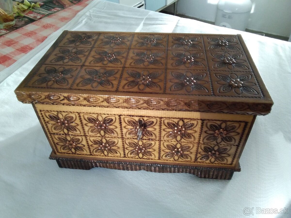 Predám šperkovnicu rozmerov cca 12cm šírka x 11 výška x 20 dlžka. Drevená, kovové ozdoby. Neposielajte sms - nečítam ich, ani na ne neodpovedám. Na dobierku tovar nezasielam !!!! Platba buď v hotovosti, alebo prevodom na účet. Najradšej mám osobný odber.