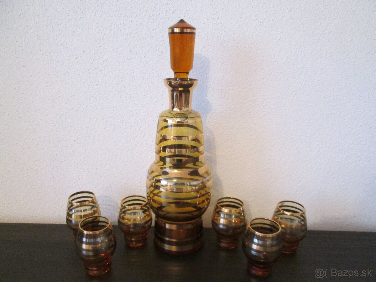 Predám retro súpravu Bohemia na pálenku.Farba bledohnedá zlaté a strieborné pásky.Výška karafy 23cm,výška pohárika 6cm. 100% stav. viem priniesť do Ba,alebo dobierka.