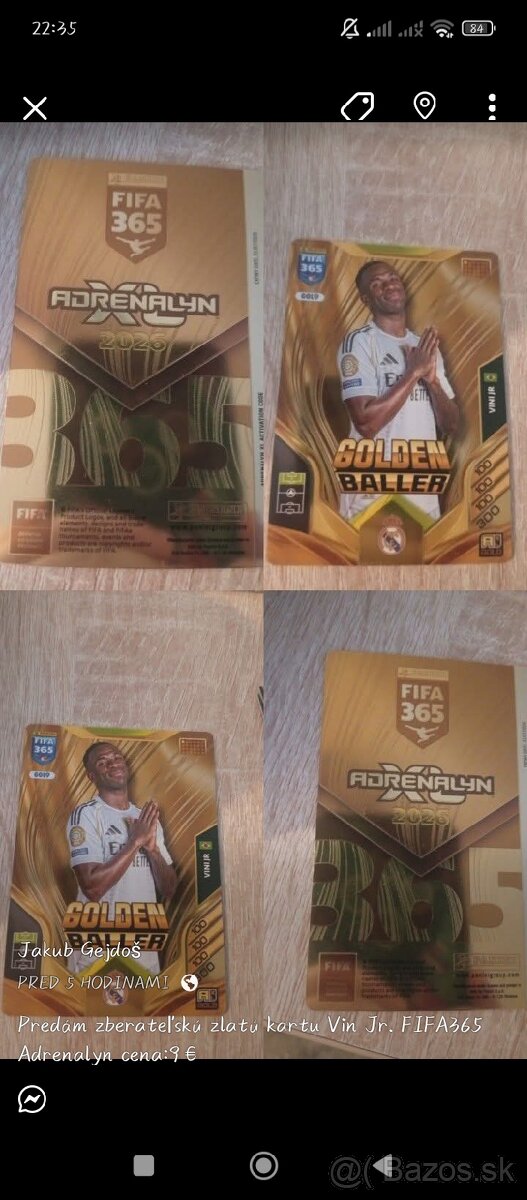 Predám zberateľskú zlatú kartu Vin Jr. FIFA365 Adrenalyn . Nepoškodena vo výbornom stave