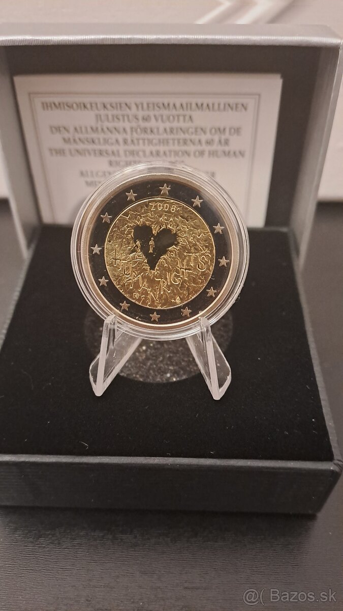 Ponúkam pamätnú 2€ mincu z Fínska 2008 - Ľudské práva v najvyššej kvalite proof. Etui, certifikát aj minca v 100% stave