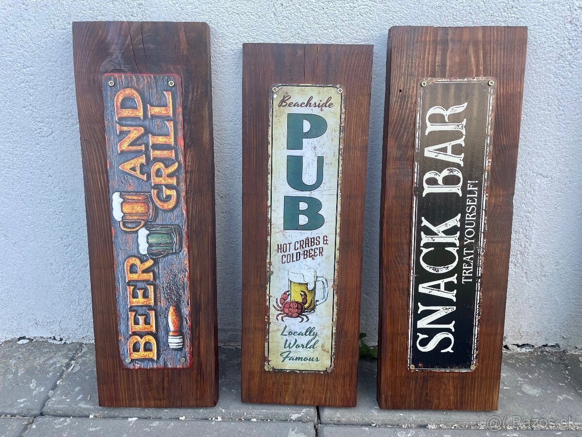Plechové cedule na dreve