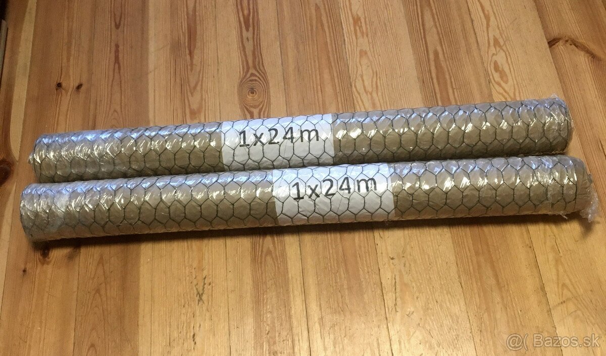 Predám chovateľské pletivo drôtené + PVC zelený povlak, úplne nové, originálne zabalené v 2 rolkách po 24 metroch, spolu dĺžka 48 metrov, výška 1 meter, oko 30 mm, hrúbka drôtu 1 mm. Cena spolu 40 €.