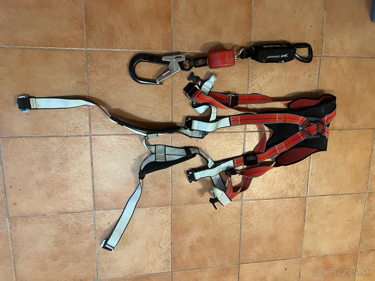 Predám profesionálny bezpečnostný postroj na prácu vo výškach spolu s tlmičom pádu a veľkým bezpečnostným hákom.