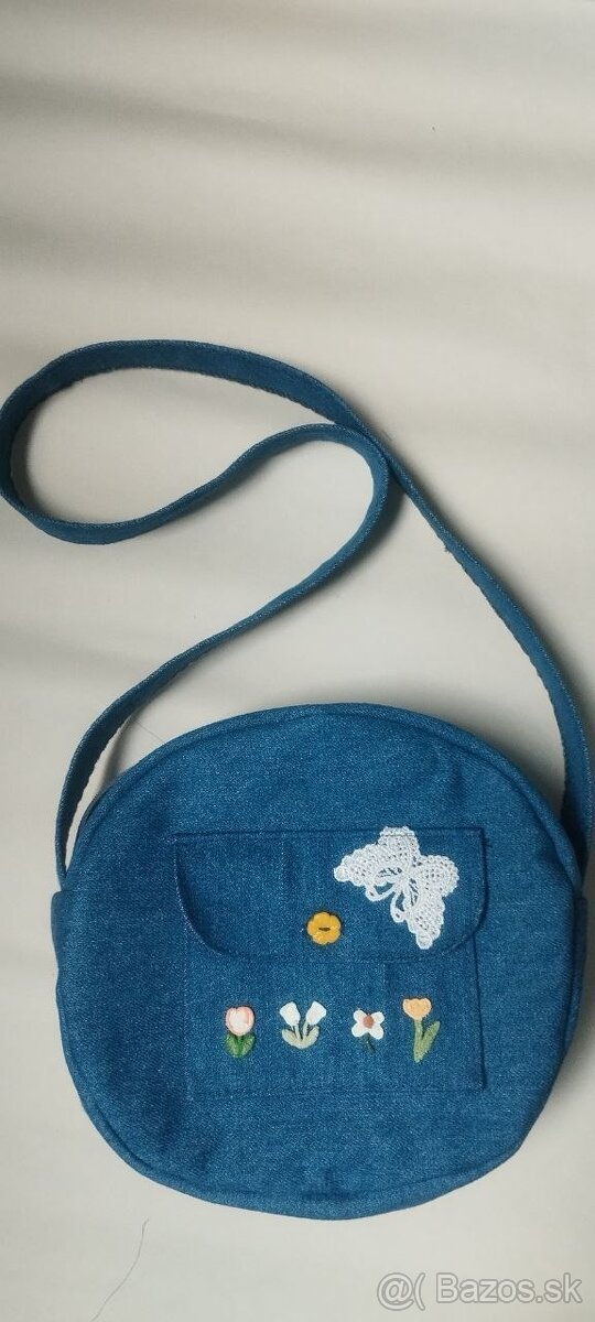 Nova kabelka z rifloviny. Ovalny tvar 23 X 21 cm, sirka 8cm. Podsita. 1 vrecko zpredu a 1 vnutri