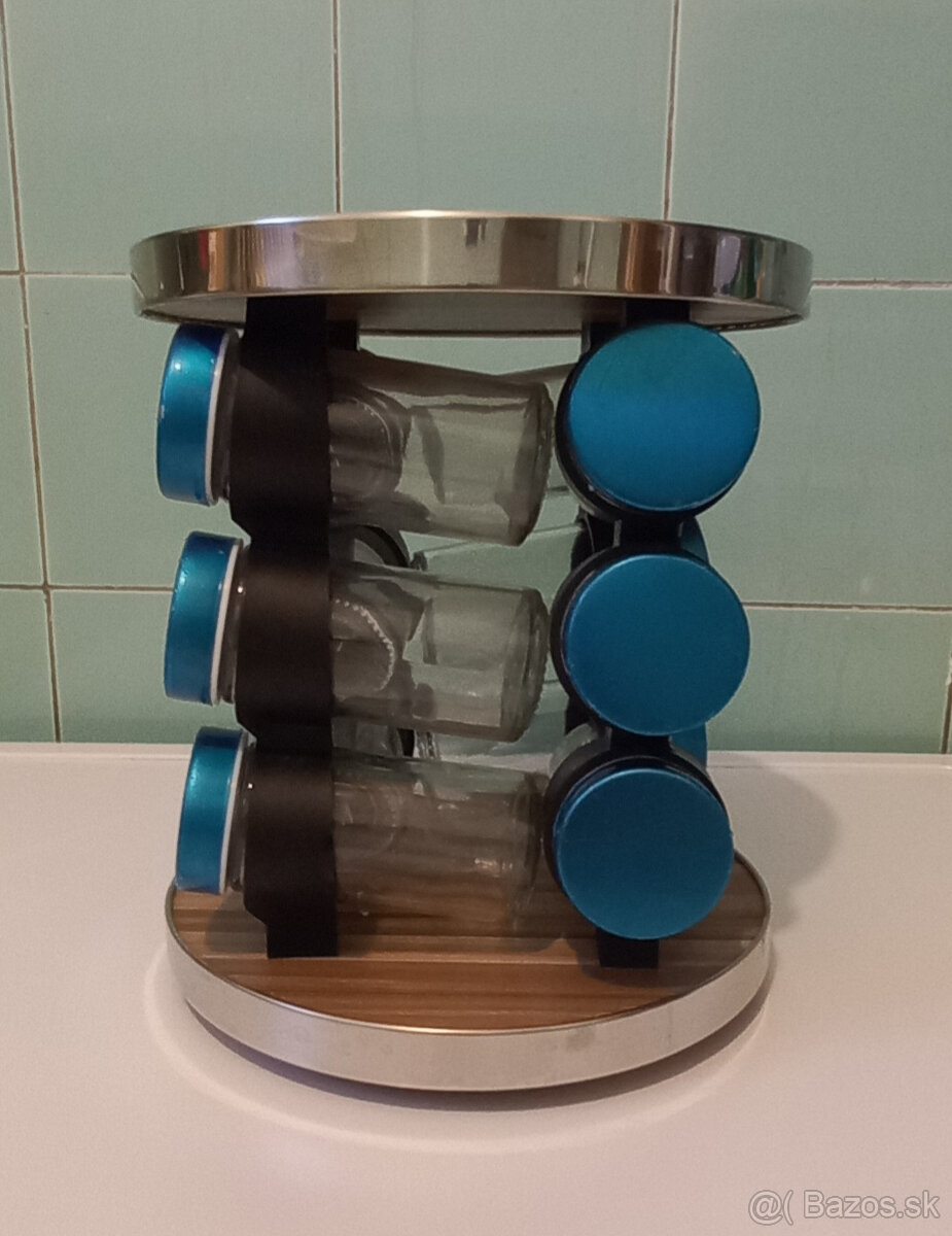 Predám otočný stojan s 12-timi sklenenými koreničkami. Stav: nové, nepoužívané. Cena pevná: 14 Eur.