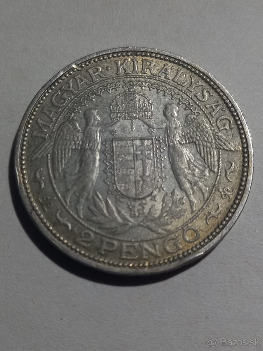 predam Strieborne 2 PENGO 1933,regentské(Pengő) (1926 - 1945).Stav po fotiek. Zloženie striebro 0.640