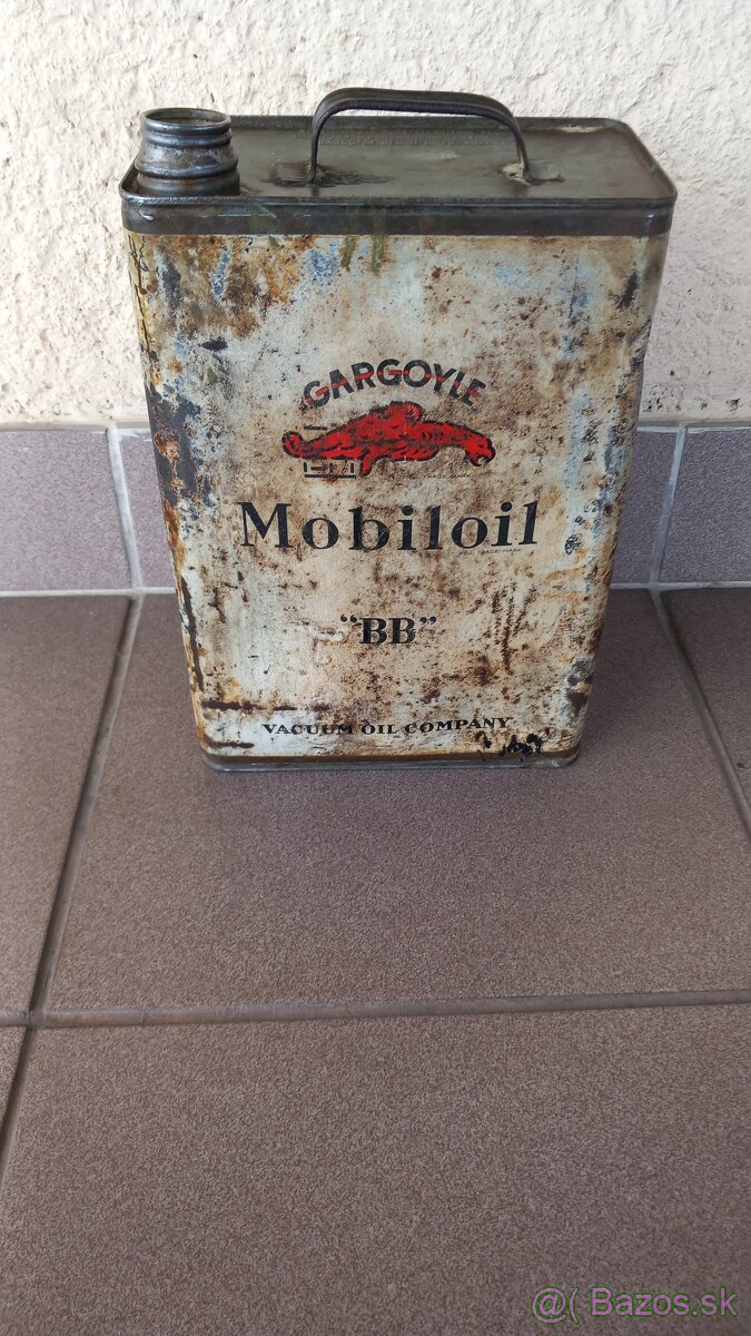 Predám originál plechovku Mobiloil,česko-nemecký text,v patinovom nálezovom stave,bez vrchnáka,rozmery 26x18,5x11