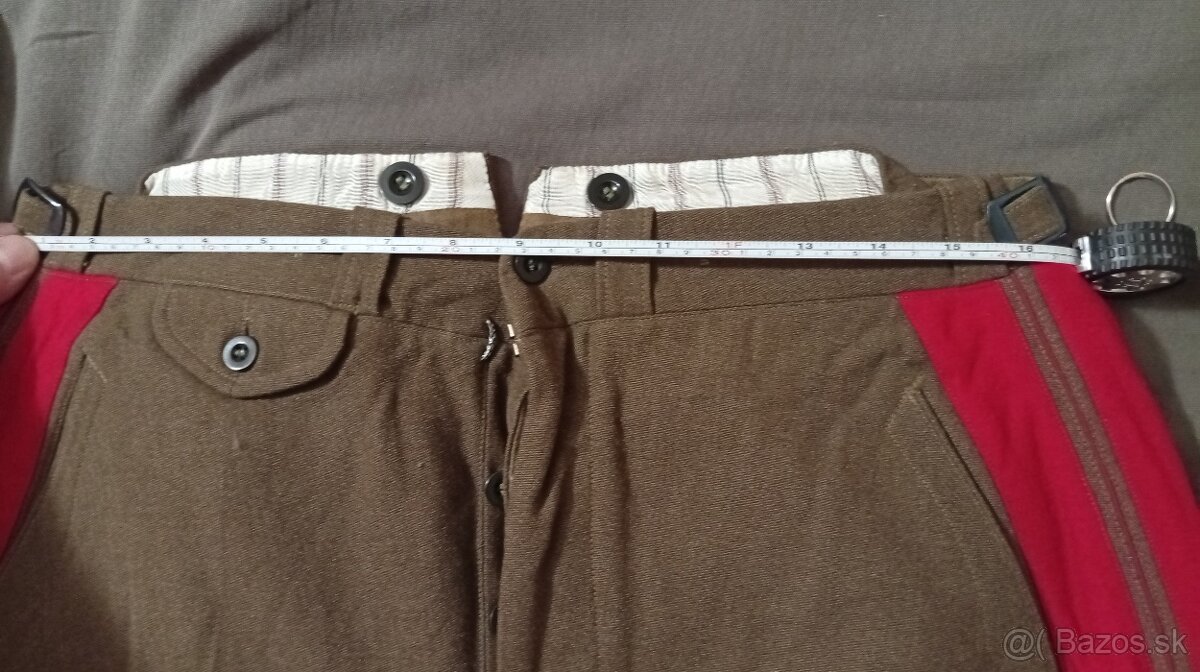 Ponúkam vojenské nohavice jazdeckého strihu, tzv. rajtky, uniformy generála československej armády. 1950te roky. Podľa materiálu a prevedenia sú výsledkom zakázkového šitia na mieru. V pase majú cca 86cm obvod. Všetko podstatné na foto. Cena 50e.