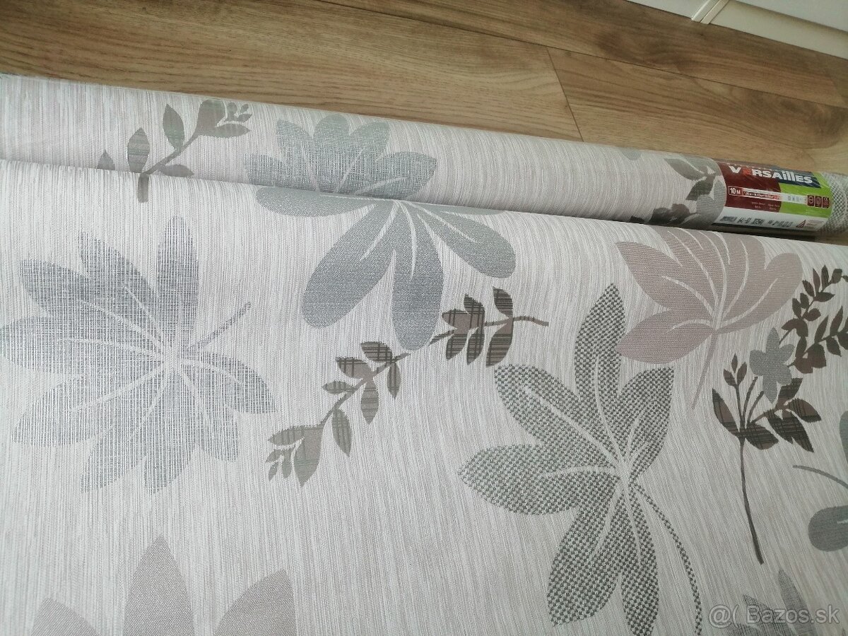 Predam dve rolky vliesovej tapety Versailles, prevlada bezova farba, strieborne listy, rozmer 1,06 m x 10,05 m. Jedna rolka zabalena, z druhej chyba 1 meter. Osobny odber v Bratislave 5.