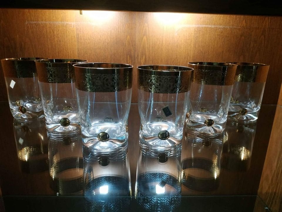 Predám exkluzívnu sadu raritných pohárov, starých približne 50 rokov. Ručne zdobené zlatým okrajom, precízne spracovanie, bez poškodení. Luxusný zberateľský kúsok aj dekorácia s noblesou minulosti. Cena 70 €.