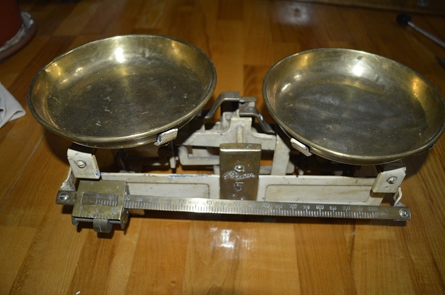predam starozitne nemecke vahy, rarita, vo velmi peknom nalezovom stave, vazia do 5kg, mosadzne misky a doplnky, cena 50 eur plus postovne