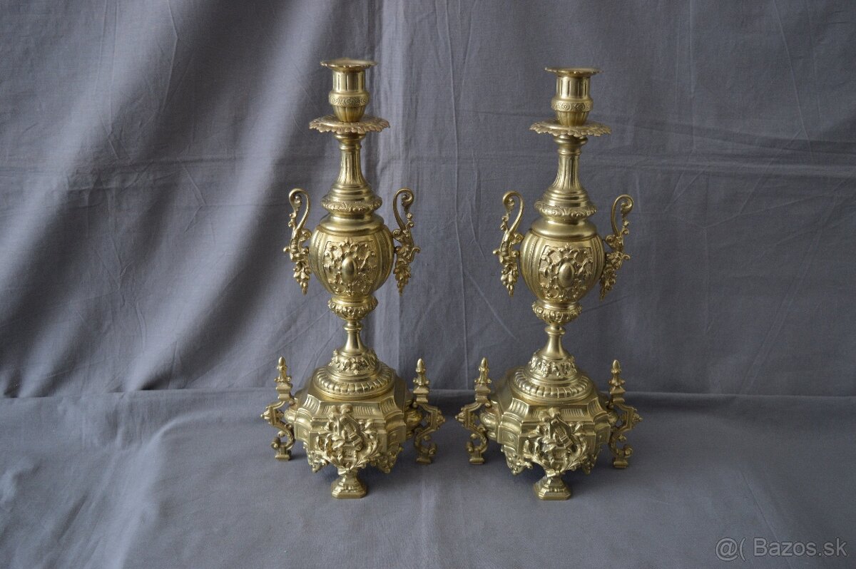 Mosadzné svietniky - [25.12. 2025]Zač. 20.st., výška 63cm, šírka 36cm, váha 6kg jeden kus, Francúzsko
