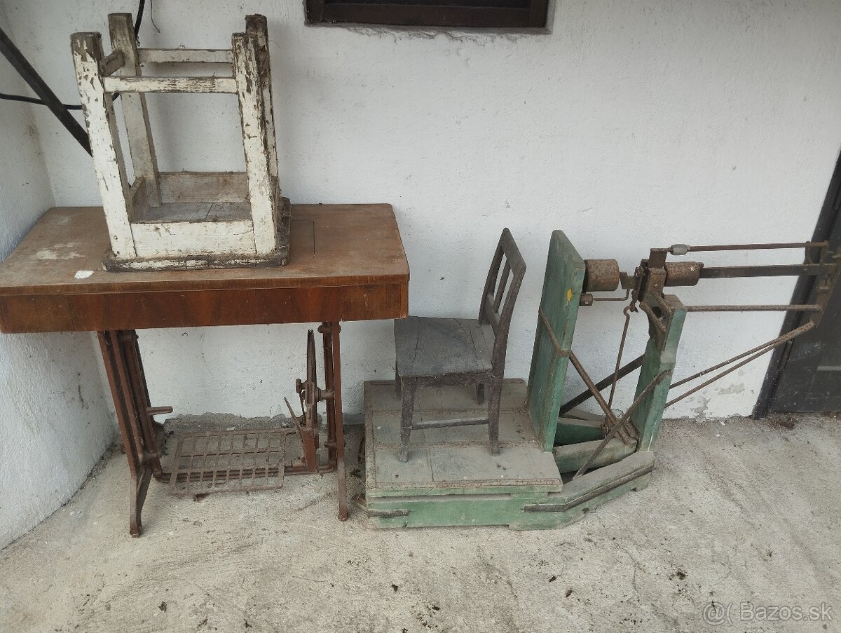 Predám starý kredenc , váhu, šijací stroj,retro luster
