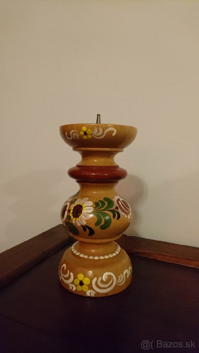 Predám krásny drevený maľovaný svietnik. Výška 18cm.