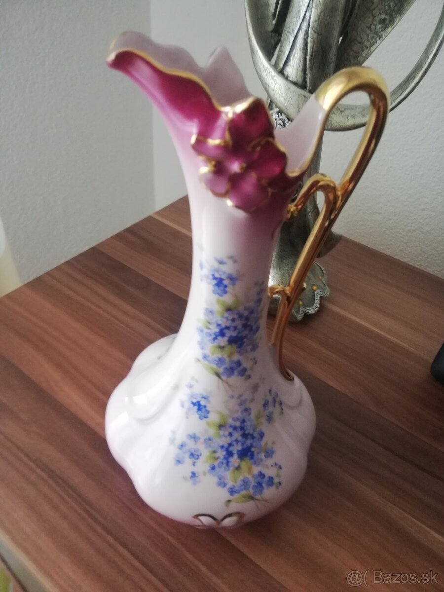 Ružový porcelán karafa modre kvietky, plus pošta