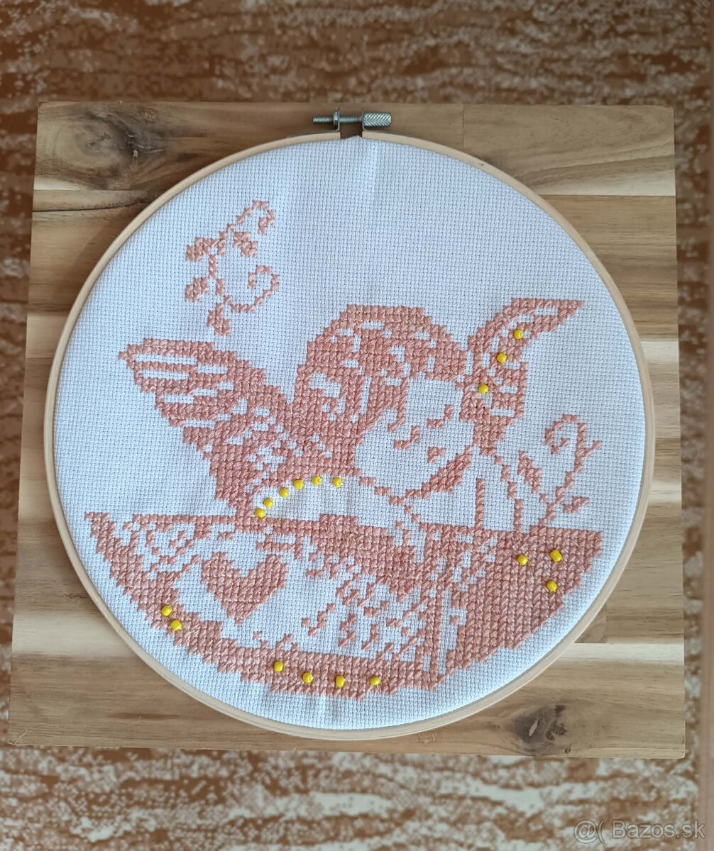 Ponúkam obrázok, vlastnoručne vyšitý na paname, upevnený v drevenom kruhu s priemerom 27 cm.