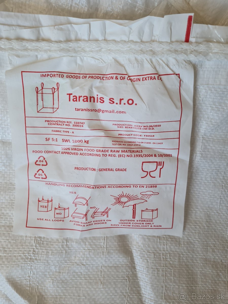 Big bagy vrecia rozmery 90x110x170,,, - [12.2. 2026]Big bagy vrecia rozmery 90x110x160.. nosnosť 1000kg... minimálny odber jedna paleta 100ks...