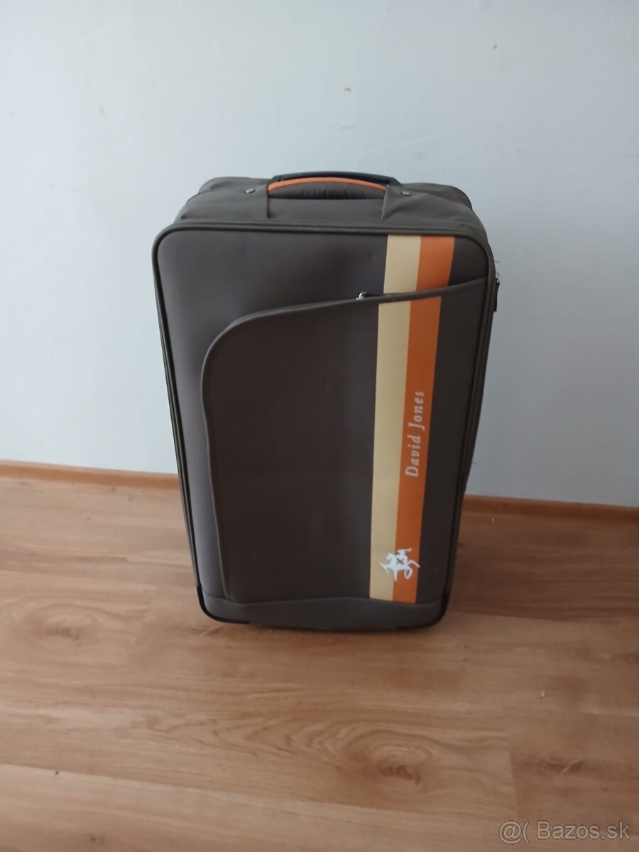 Predám cestovný kufor David Jones. Dôvodom predaja je jeho nevyužívanie. Interiér je čistý a zachovalý. Zipsy, teleskopická rúčka aj kolieska fungujú bezchybne.