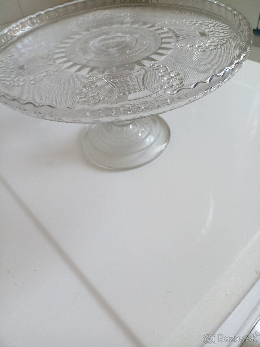 Predám dva sklenené starožitné dekoračné taniere na torty,alebo zákusky a ovocie na stopke.Aj jednotlivo.Cena každej 10,-e.