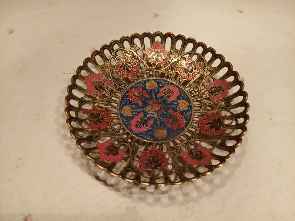 Dobrý deň, predám nepoužívaný, veľmi zachovalý kovový podnos. výška 5cm, priemer 24cm. Ručná práca, krajina pôvodu India.