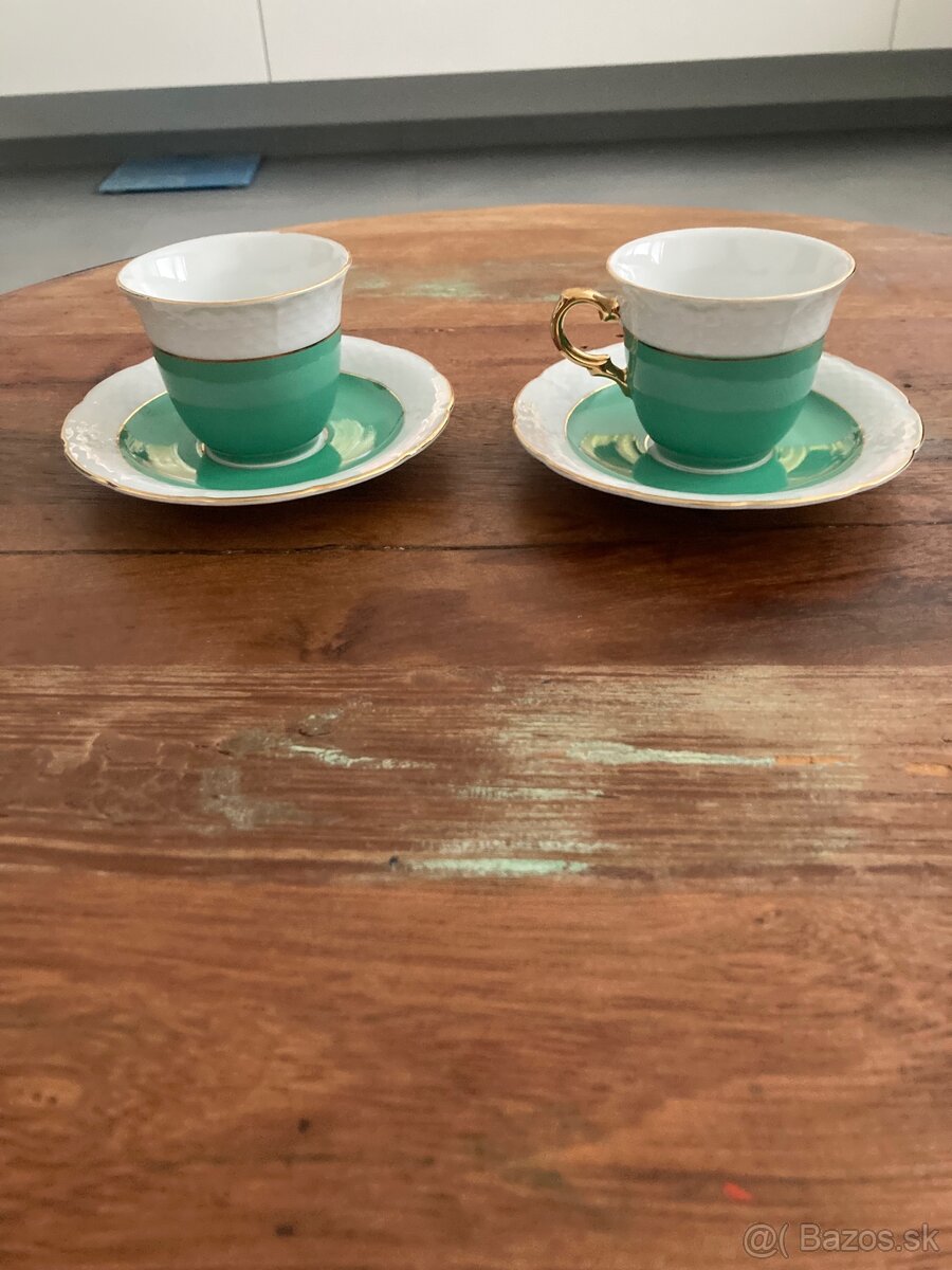 Zberateľské šálky v peknom stave.Výška šálky:6,5cmPriemer šálky:7,5cm.Tanierik priemer:13,5cm.Bezpečne zabalím!!!Osobny odber,dobierka,platba vopred.Kontaktujte ma na mail.