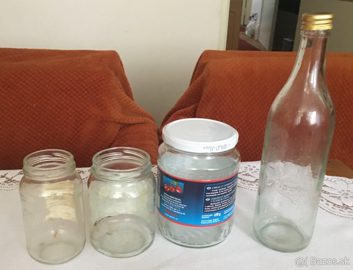 Predam medove a zavaraninove pohare male (na dzem, chutney ) 0,20 eur/ks (vacsie 0,30 eur), 7 dcl s vieckom 0,50/ks, bez viecka 0,40/ks,flase na kecup/sirup 0,50ks, flasa na vino 3 eur, bandasky 2 eur.Len osobny odber Nove Zamky
