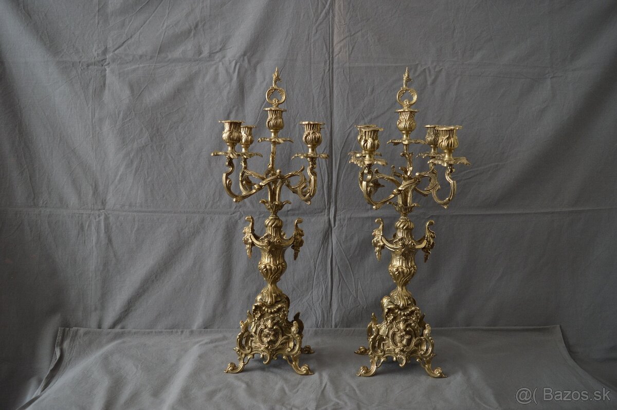 Mosadzné svietniky - [23.2. 2026]Kon. 19.st., výška 38cm, podstavce 17x13cm, váha 2,5kg jeden kus, Francúzsko