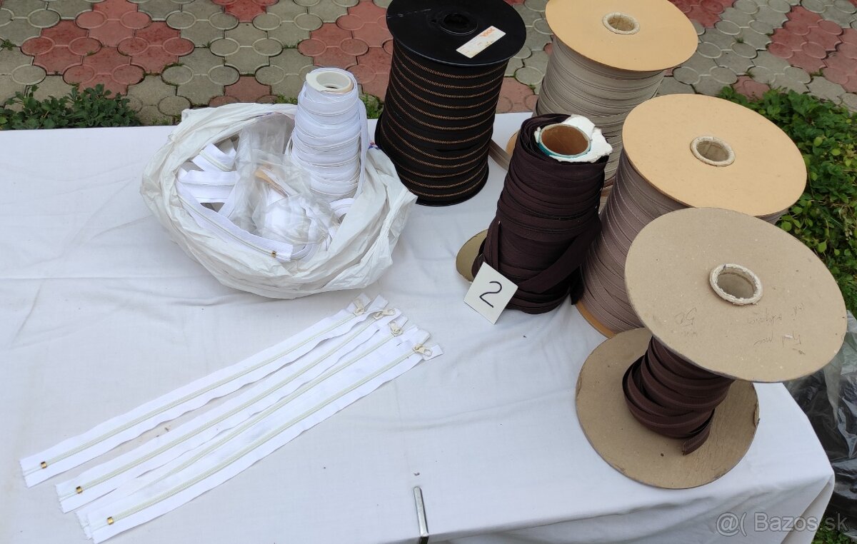 č. 2 - zipsy na metre (umelé - 1 m 0,20 €, kovové s bežcom- 1 m 0,50 €)