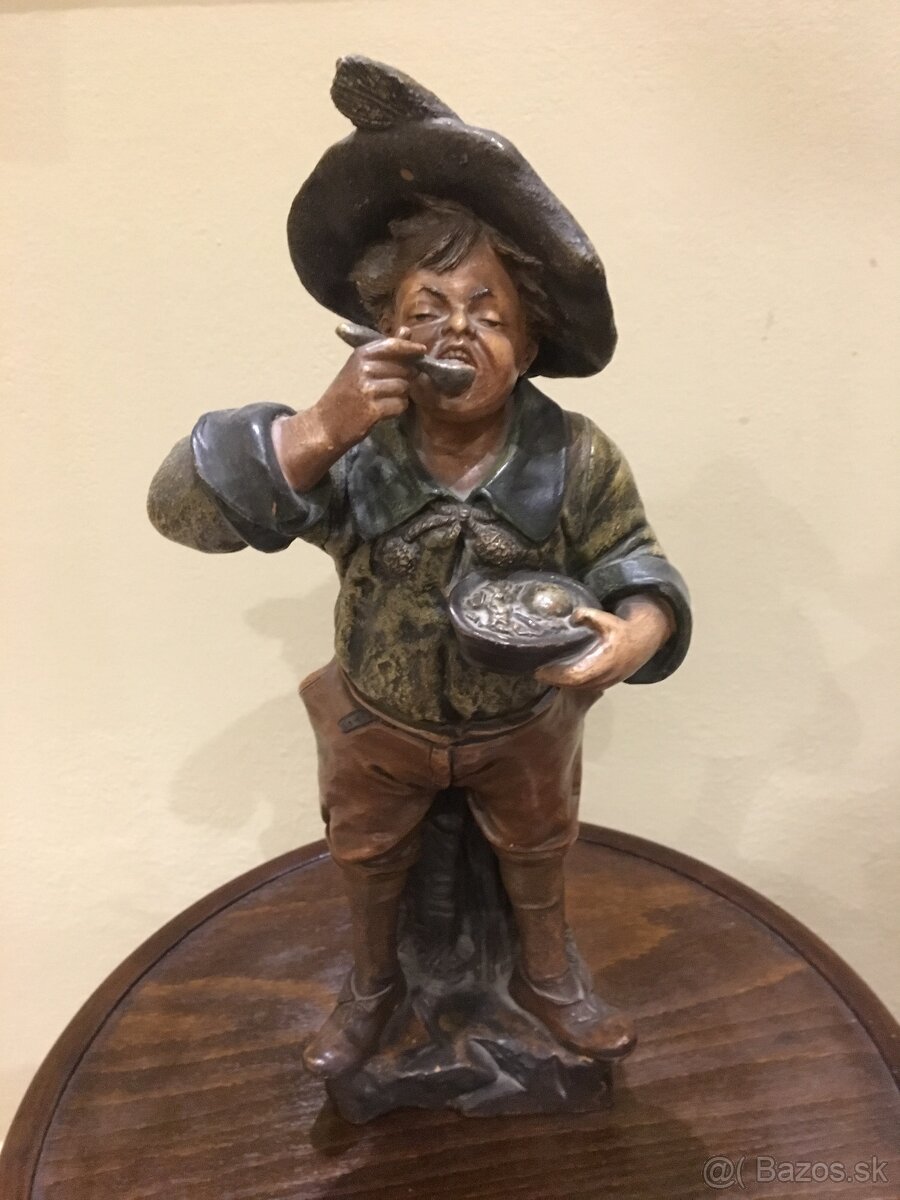 Predam staru sošku jediaceho chlapca,material siderolit-teralit,Bernard Bloch-signovana BB-Unčin u Teplic od r.1869,vyska 40cm,info 0905476740,pozri aj ostatne moje inzeraty