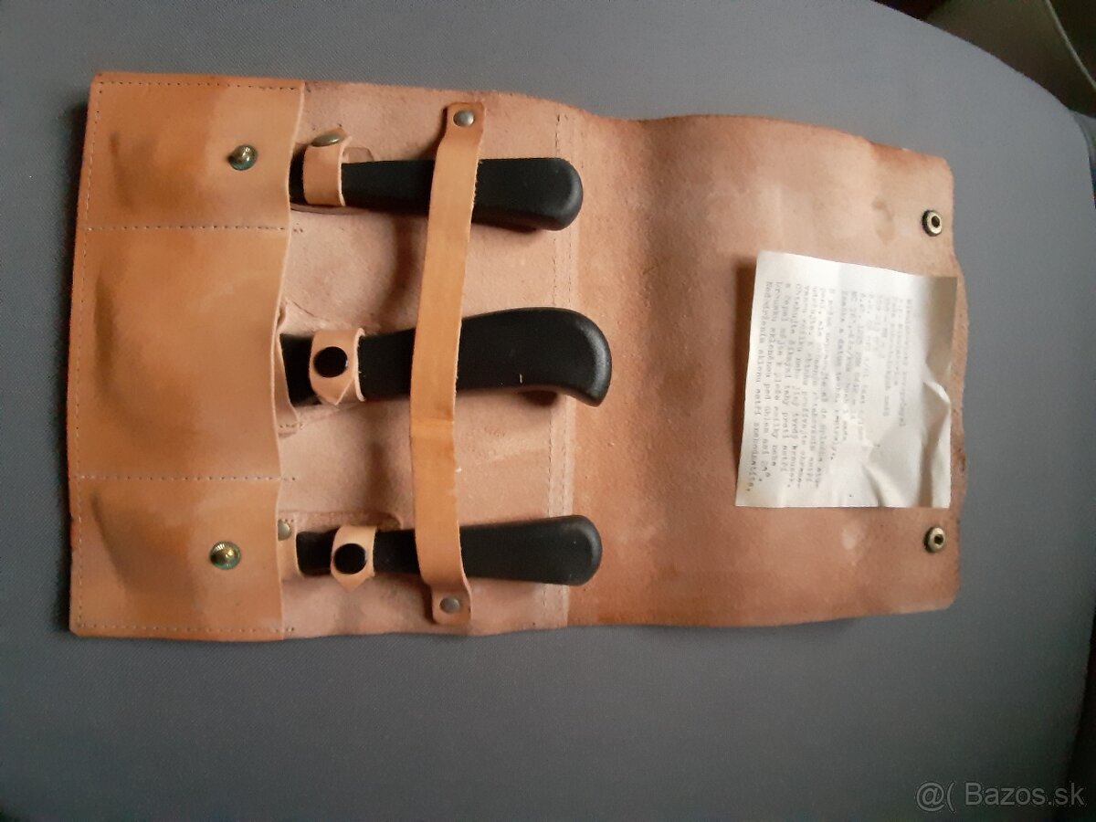 Noze v kozenom puzdre, nove nepouzite. Vyrobene v 80tych rokoch v CSSR.