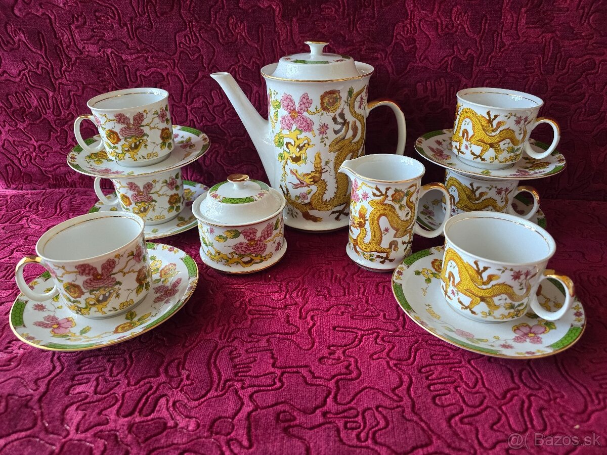 porcelánová čajová (kávová) súprava - [22.2. 2026]made in Czechoslovakia, set obsahuje: čajník, mliečnik, cukornička, 6x šálky + 6x podšálky.na jednom tanieriku mierne poškodenie, viď obrázok.