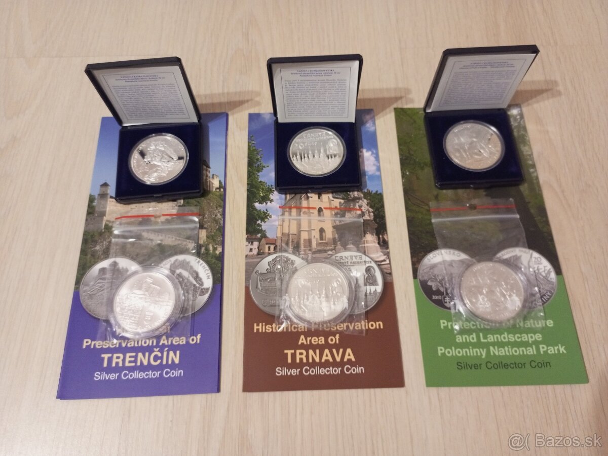 Dobrý deň. Ponúkam na predaj 20€ Trenčín, Trnava a Poloniny v kvalite proof a BK. Cena za pár 210€.
