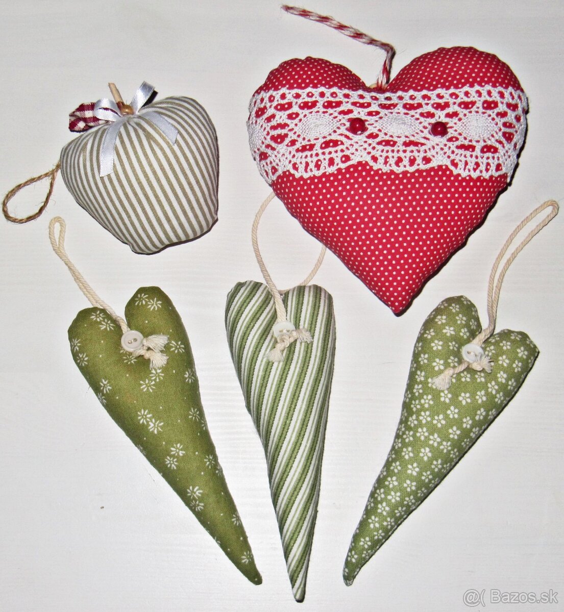 Mám na predaj šité hand made srdiečka a jablko. Predáva sa len celá sada 5 kusov. Červené srdce je široké 14,5 cm. Zelené srdiečka sú dlhé : 16 cm, 16 cm, 15,5 cm. Veľkosť šitého jablka je 9 cm - merané od stopky dole. 7 eur je za celú sadu - 5 kusov. Osobný odber alebo poštovné je 3,50 eur platba vopred na účet. Poprosím písať na e-mail.