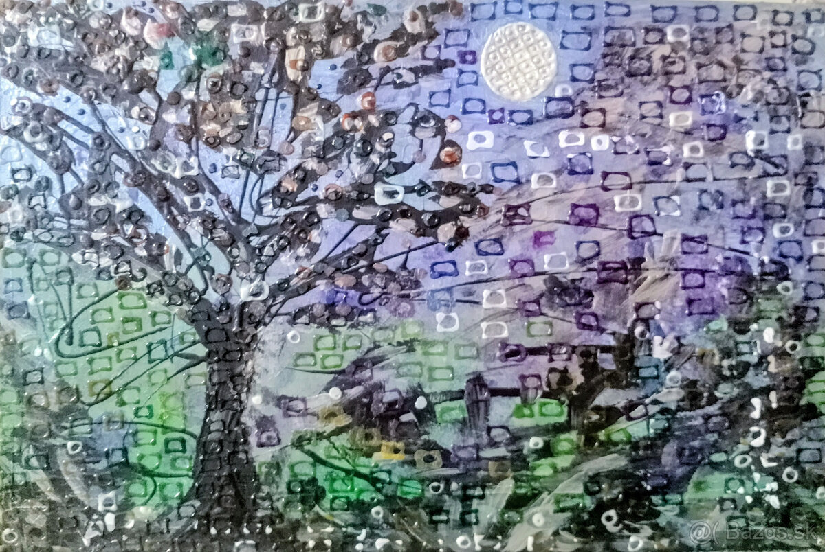 Maľba kombinovanou technikou, na sololite. Ďa sa zavesiť. Rozmer 60x 40 CM. Rok 2021.