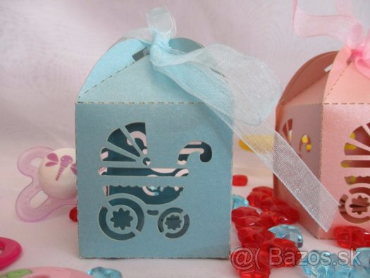 Ozdobné krabičky s výrezom kočíka modrej farby, NOVÉ