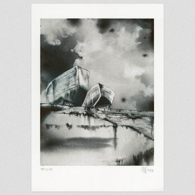 Predám grafiku Čierne diery - Lucia Tallová - Pamätník SNP v Banskej Bystrici. Grafika je nová, nevybalená.