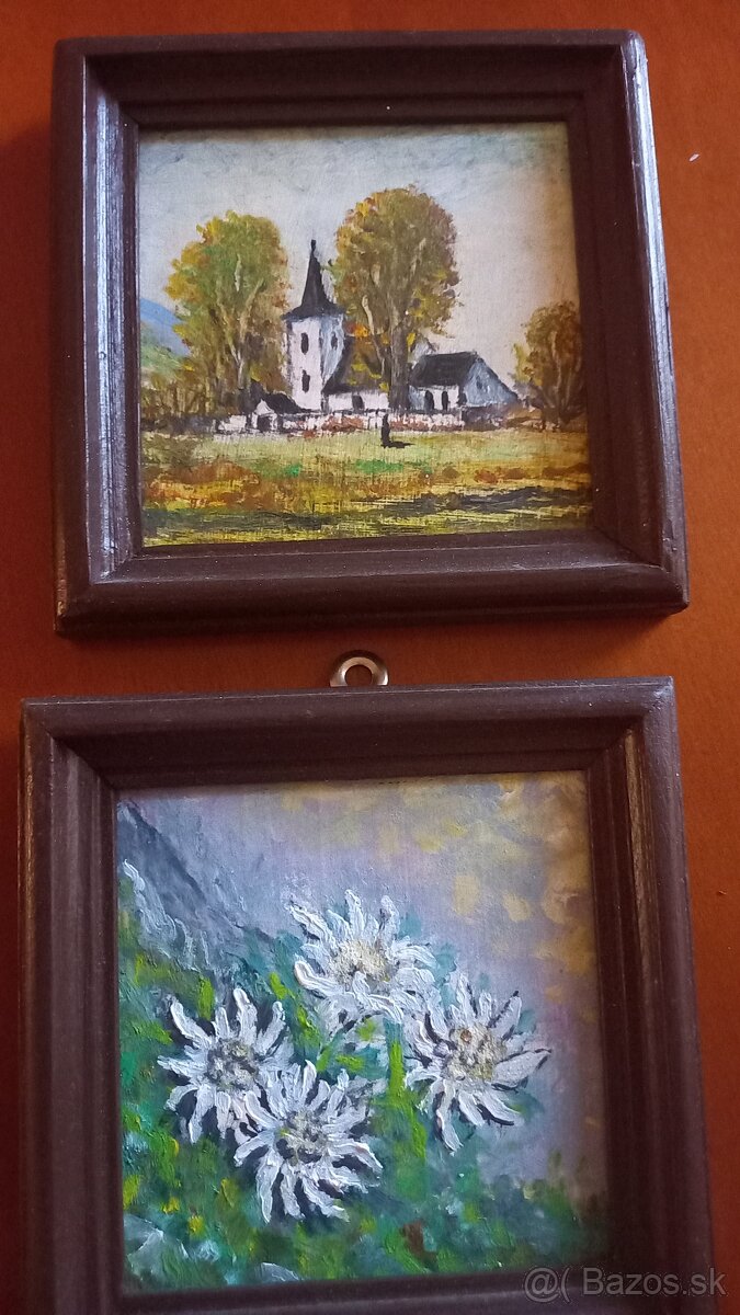 2 maľované obrázky - [8.1. 2026]Predám 2 maľované obrázky. Oba V 16 cm x š 21 cm. Iba spolu.