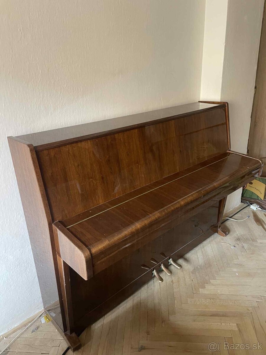 Pianino je v nálezovom stave, mierne zvnútra zaprášený, rozladený, “trojpedáľový” + okrúhla stolička.
