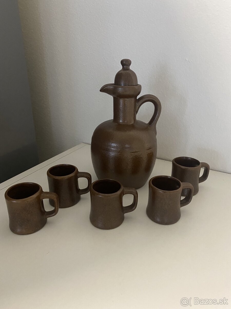 Keramická karafa s uzáverom obj.0,5 l a 5 ks poharikov obj.0,5 dc. Nepoužívaný stav bez poškodenia