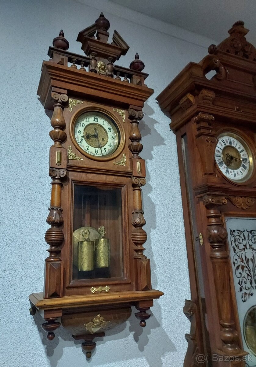 Starožitné neorenesančné veľké nástenné hodiny - [27.2. 2026]Ponúkam na predaj krásne zachované neorenesančné veľké nástenné hodiny odhadujem okolo konca 19. storočia (cca 1880 – 1910), so závažovým mechanizmom.