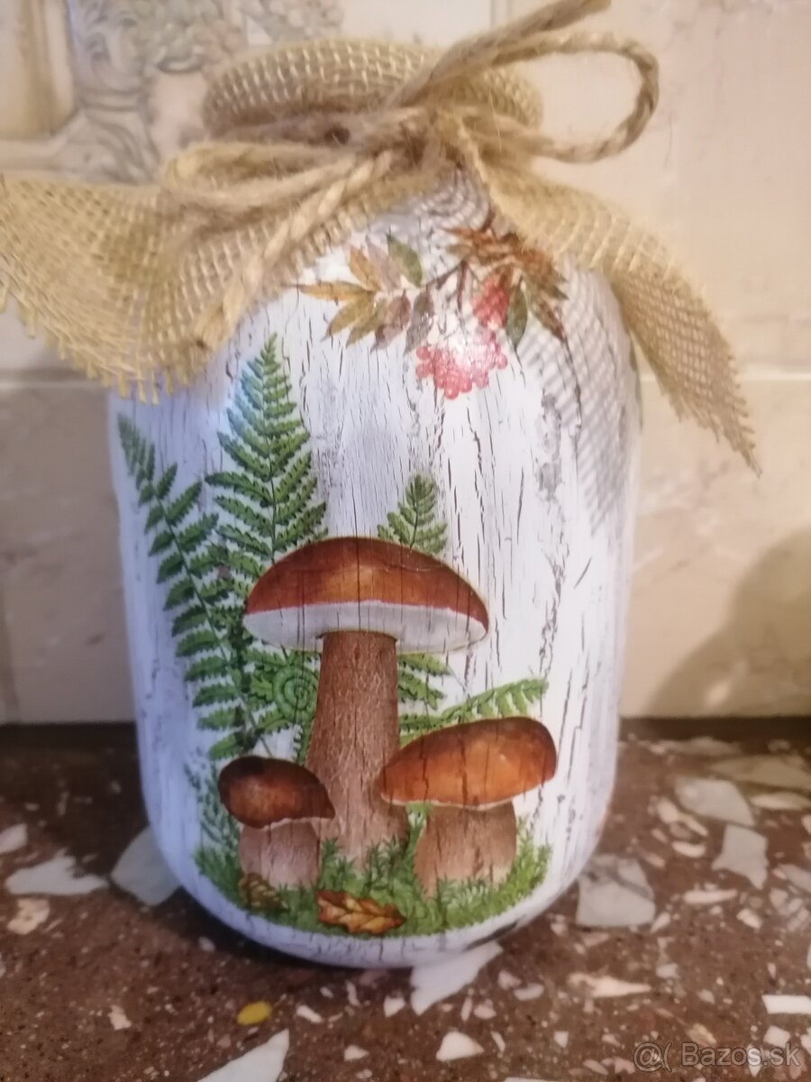 Predám 3-litrovu fľašu na sušené huby robené servitkovou technikou, cena 5€+poštovne alebo osobne Žilina a Bytča