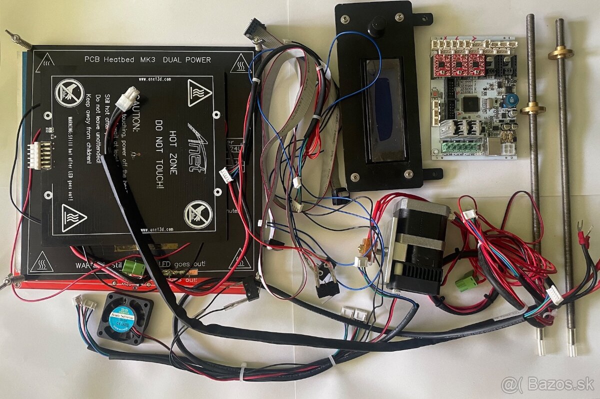 Predám zostatky s 3D tlačiarne , na predaj sú výhredné podložky (head bed) s rozmermi 180x180 a 120x120 nepoužité, extruder, ventilátory , kabeláž , riadiaca jednotka , display , krokové motory , závitové tyče s maticami, sklednná podložka + nálepky.... všetko ako je na foto prípadne aj viac. Kontakt mailom.