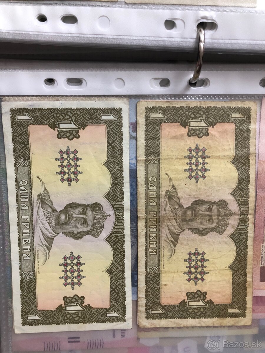 1 hrivna 1995,VF…4€… na 1992,XF..2€..(popisana s perom vzadu)…