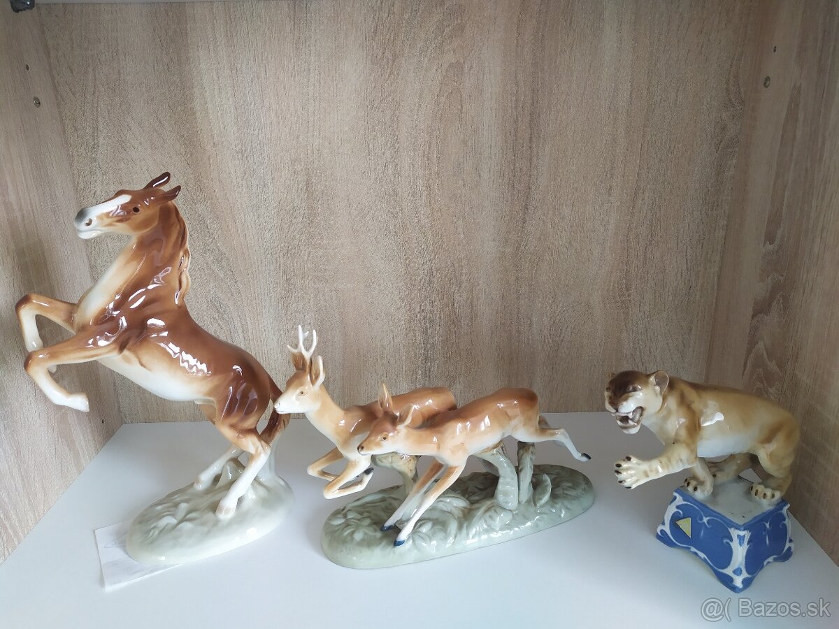 Predam sosky Royal Dux, kon/ vitrinovy stav/: 50€+posta, srnky- lepeny paroztek/ inak vitrinovy stav...odlomeny paroztek pri neopatrnej manipulacii/:10€+posta, tiger /vitrinovy stav/: 80€+ posta.