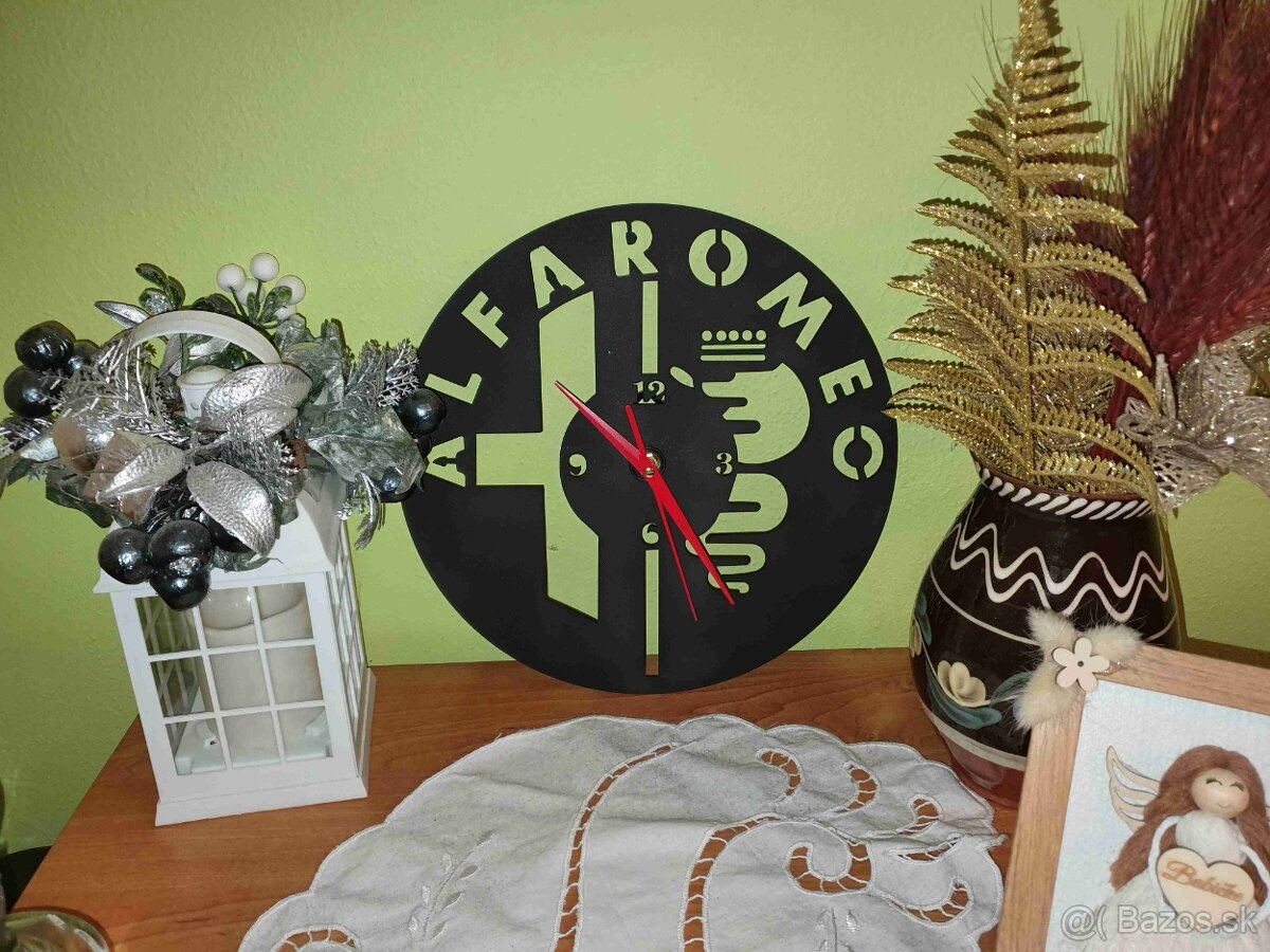 Predám hodiny Alfa Romeo,vlastný výrobok,priemer cca 285mm,hr.materialu 2mm,oceľ,opieskované,nalakované.