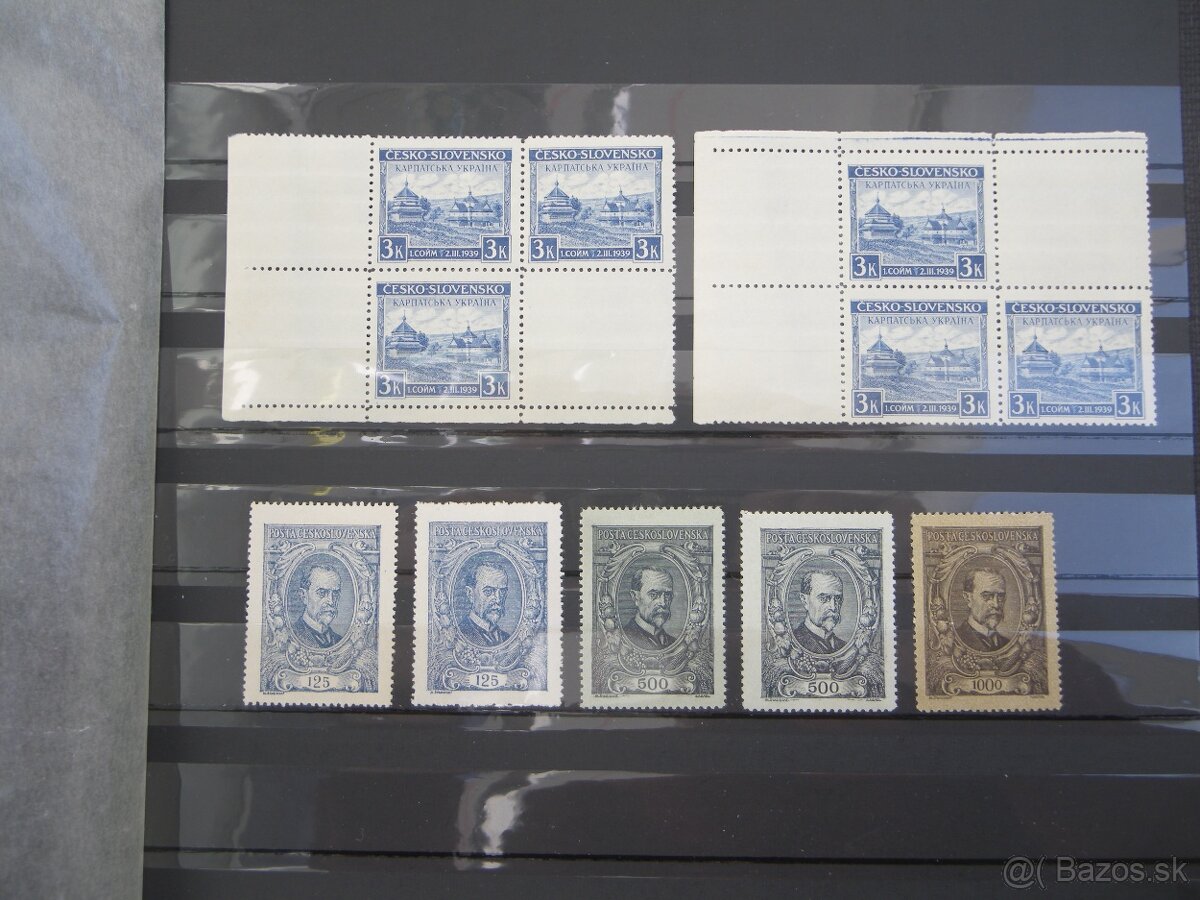 Vzacnejsie postove znamky - Ceskoslovenske vojsko na Rusi 1920, kompletna seria Masaryk s variantami, znamky Karpatska Ukraina, vzacna znamka Stefanik - modra 60hl a pretlacove znamky, vsetke znamky su ciste s lepom, pekny zachovaly stav, cena za komplet 75eur.