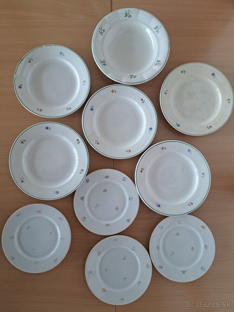 Starozitne taniere - [25.2. 2026]Vsetke sú keramické iba tie čierne s kvetmi sú drevené 15ks dohoda mozna na cene
