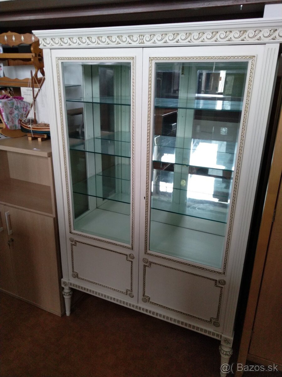 Predám takúto vitrínu v starožitnom štyle vo výbornom stave. Nutné zniesť z tretieho poschodia. Foto je ilustračné.