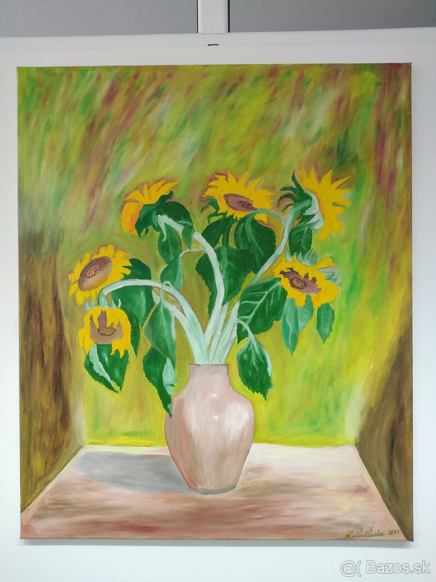 Predám obraz Slnečnice vo váze. Olej na plátne. Rozmer 120 x 100 cm.
