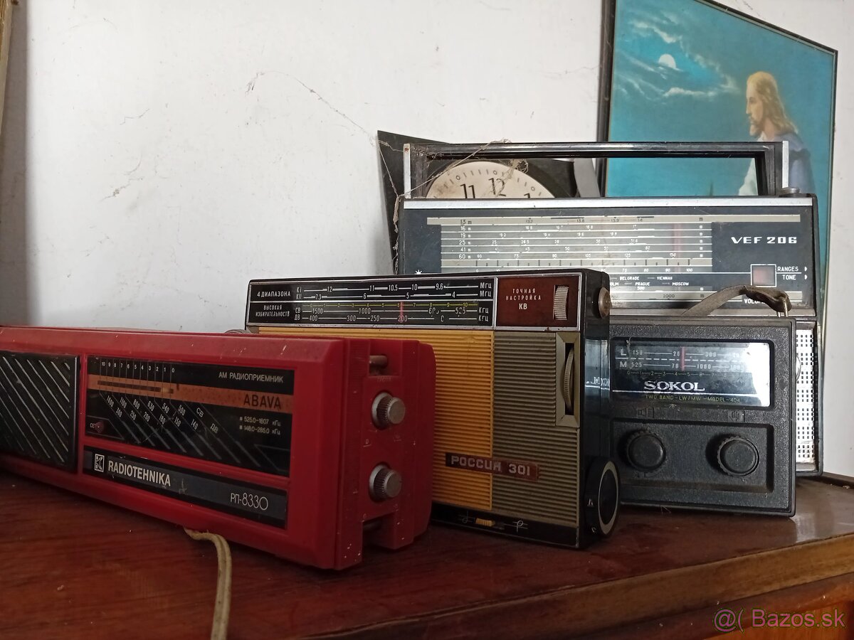 Predám zbierku starých sovietskych rádií (VEF 206, Rossija 301, Abava, Sokol). Vhodné pre zberateľa alebo ako štýlová retro dekorácia.